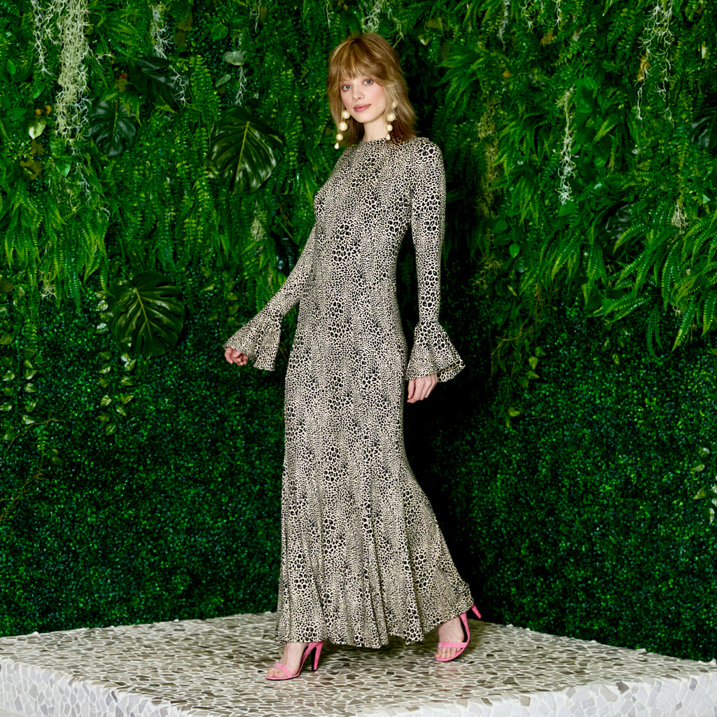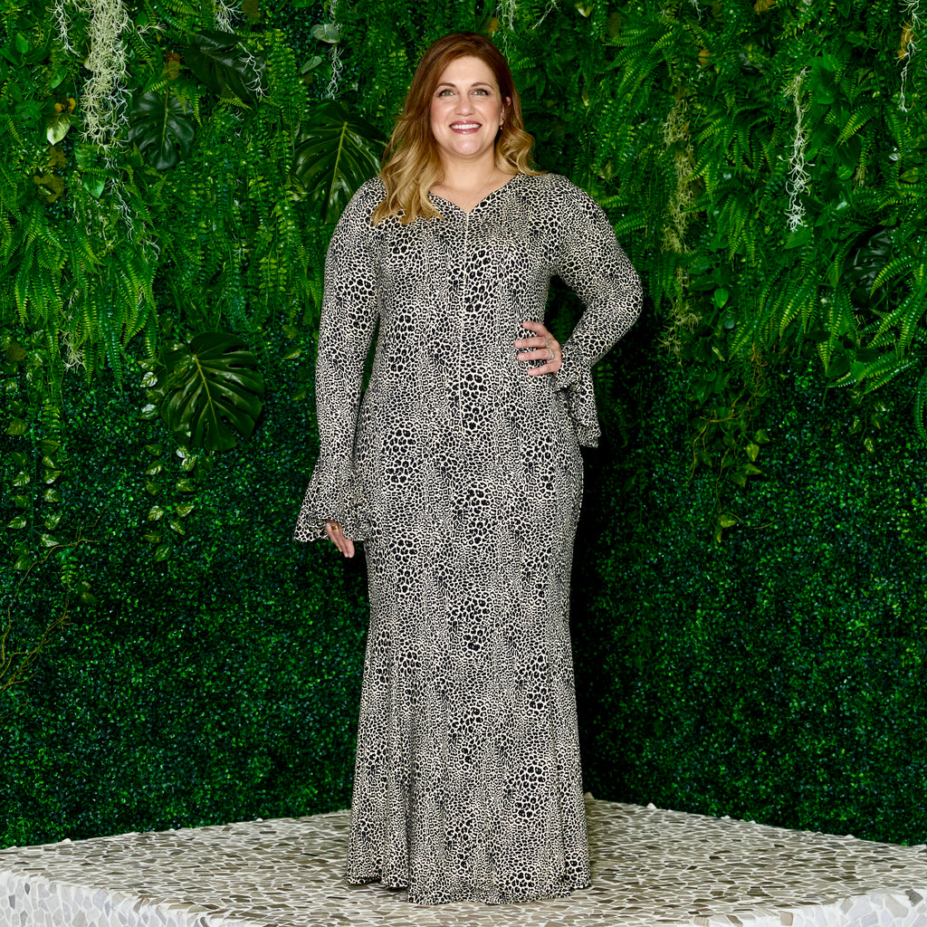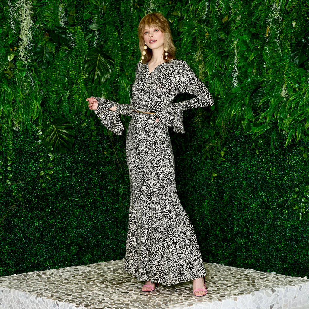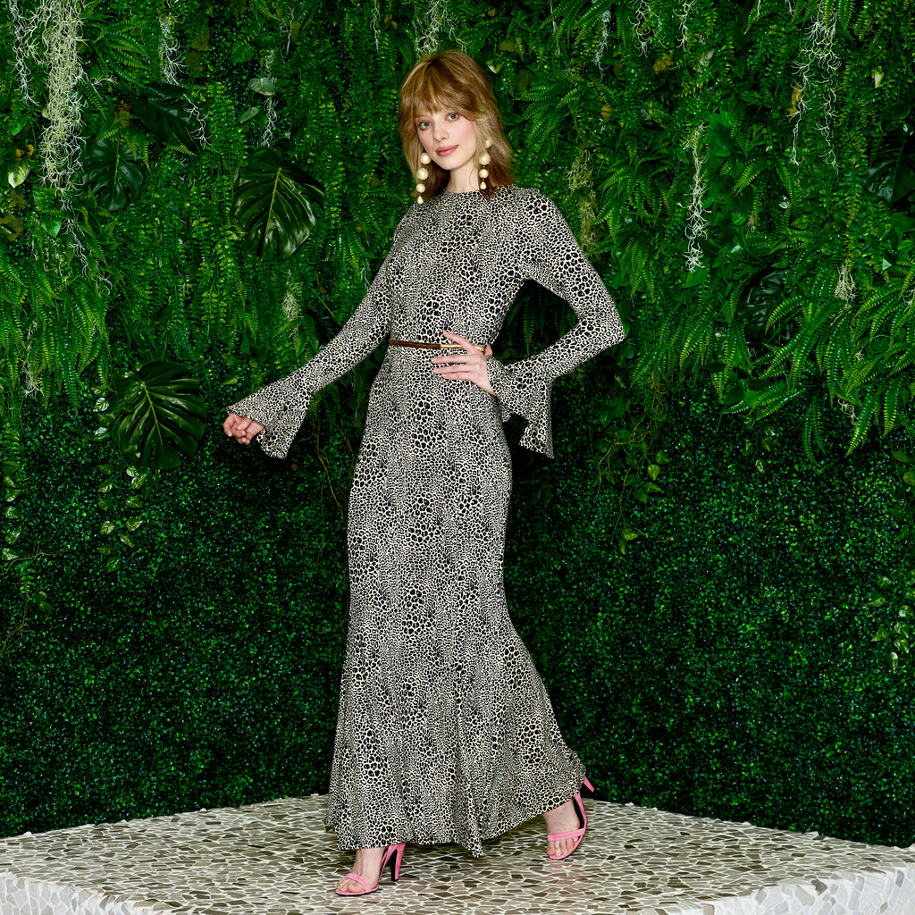 GARNERING ITS MONIKER FROM THE FLOWY SLEEVE AND MERMAID-STYLE HEMLINE, THIS FROCK IS BEGGING TO BE TAKEN OUT FOR A LITERAL SPIN-- (IT'S FLIPPABLE!!!!!!)ELEGANT ENOUGH FOR AN EVENING OUT, YET COMFORTABLE ( THINK SOFT AND STRETCHY FABRIC) ENOUGH FOR A FORAY THROUGHOUT THE DAY, THE #linearFLUTTER IS A FROCK YOU'LL WANT TO ROCK ALL SEASON LONG!