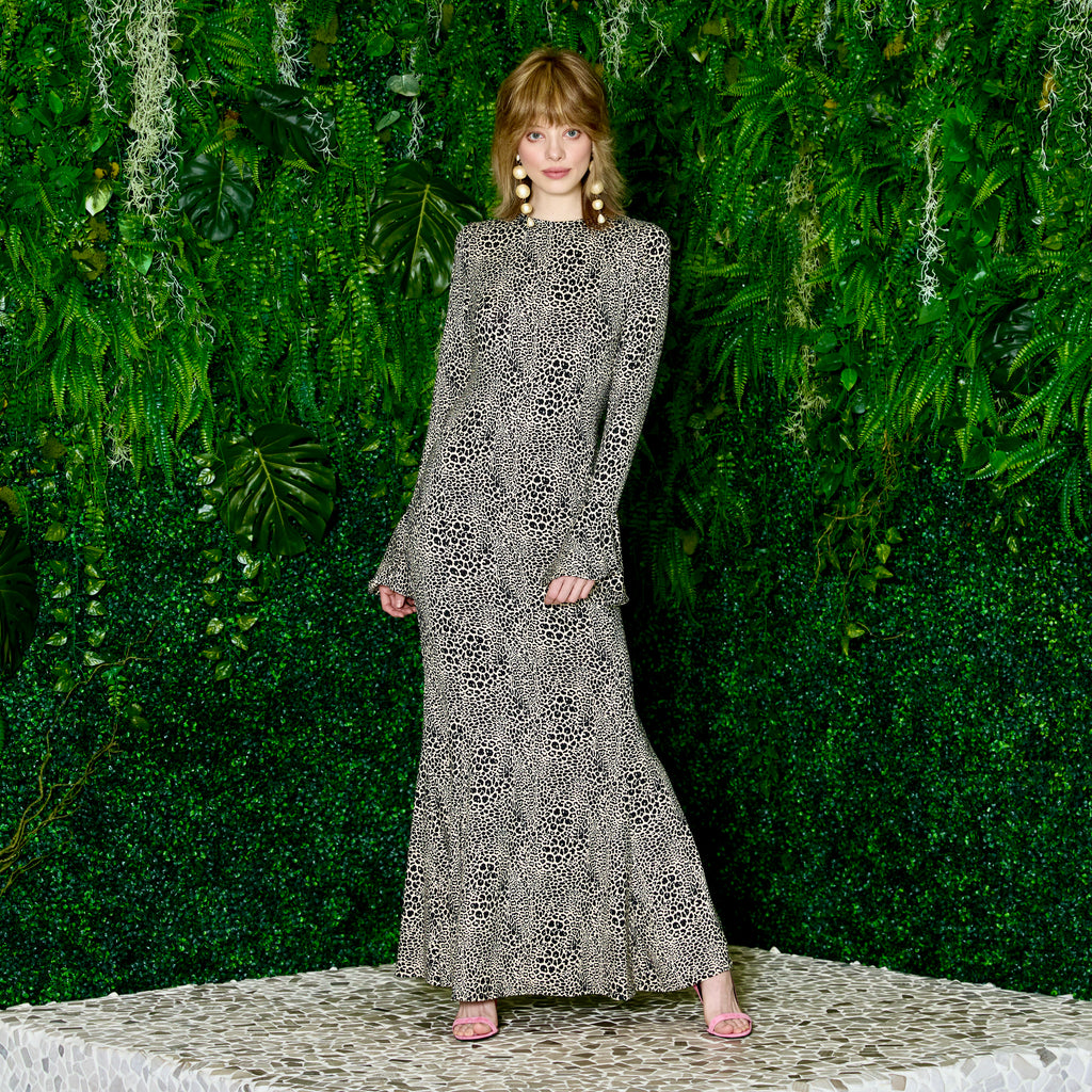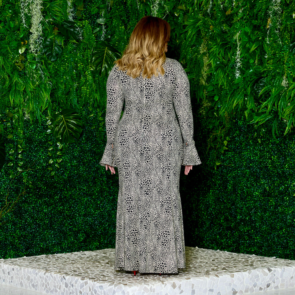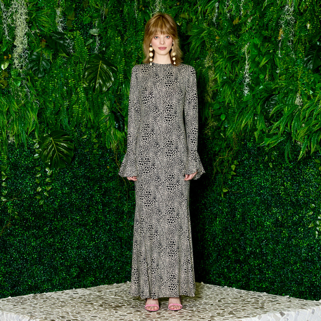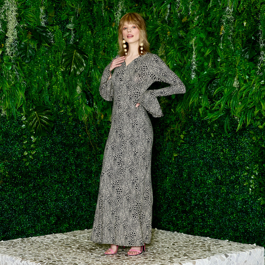 GARNERING ITS MONIKER FROM THE FLOWY SLEEVE AND MERMAID-STYLE HEMLINE, THIS FROCK IS BEGGING TO BE TAKEN OUT FOR A LITERAL SPIN-- (IT'S FLIPPABLE!!!!!!)ELEGANT ENOUGH FOR AN EVENING OUT, YET COMFORTABLE ( THINK SOFT AND STRETCHY FABRIC) ENOUGH FOR A FORAY THROUGHOUT THE DAY, THE #linearFLUTTER IS A FROCK YOU'LL WANT TO ROCK ALL SEASON LONG!