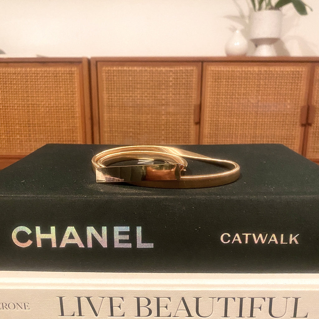 Try the #linearLINKbelt ; a golden stretchy accessory that's a match made in heaven when you need to add some structure to your silhouette.