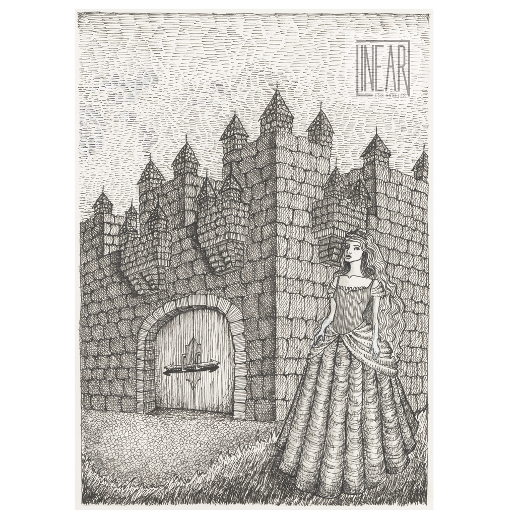 Who knows? Why does there have to be a deeper meaning beneath EVERYTHING (hehe)? If you'd like, take a deep, hard look at this drawing and decide for yourself. Or, let her penetrating gaze decide for you.MEDIUMS- Ink and graphite pencil.