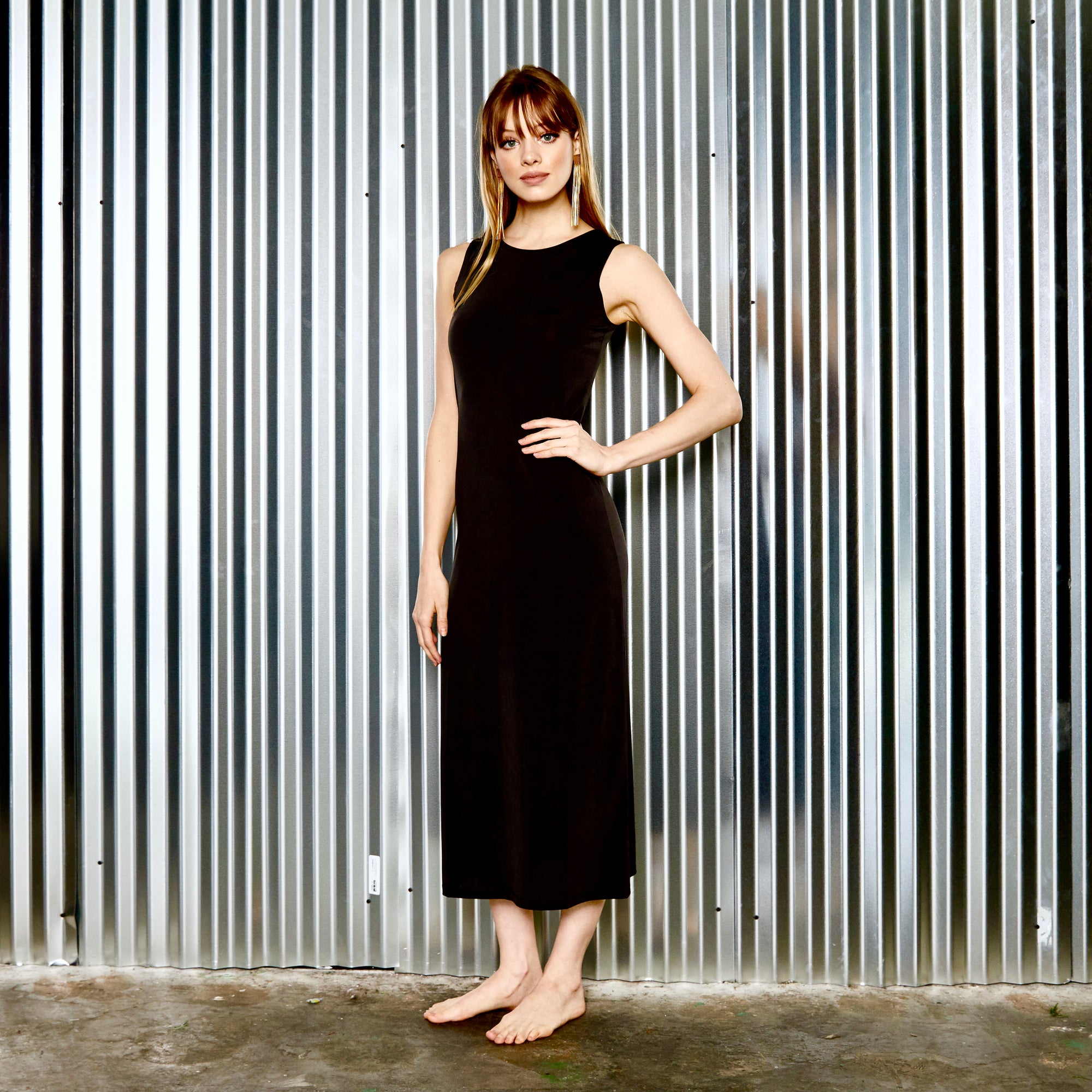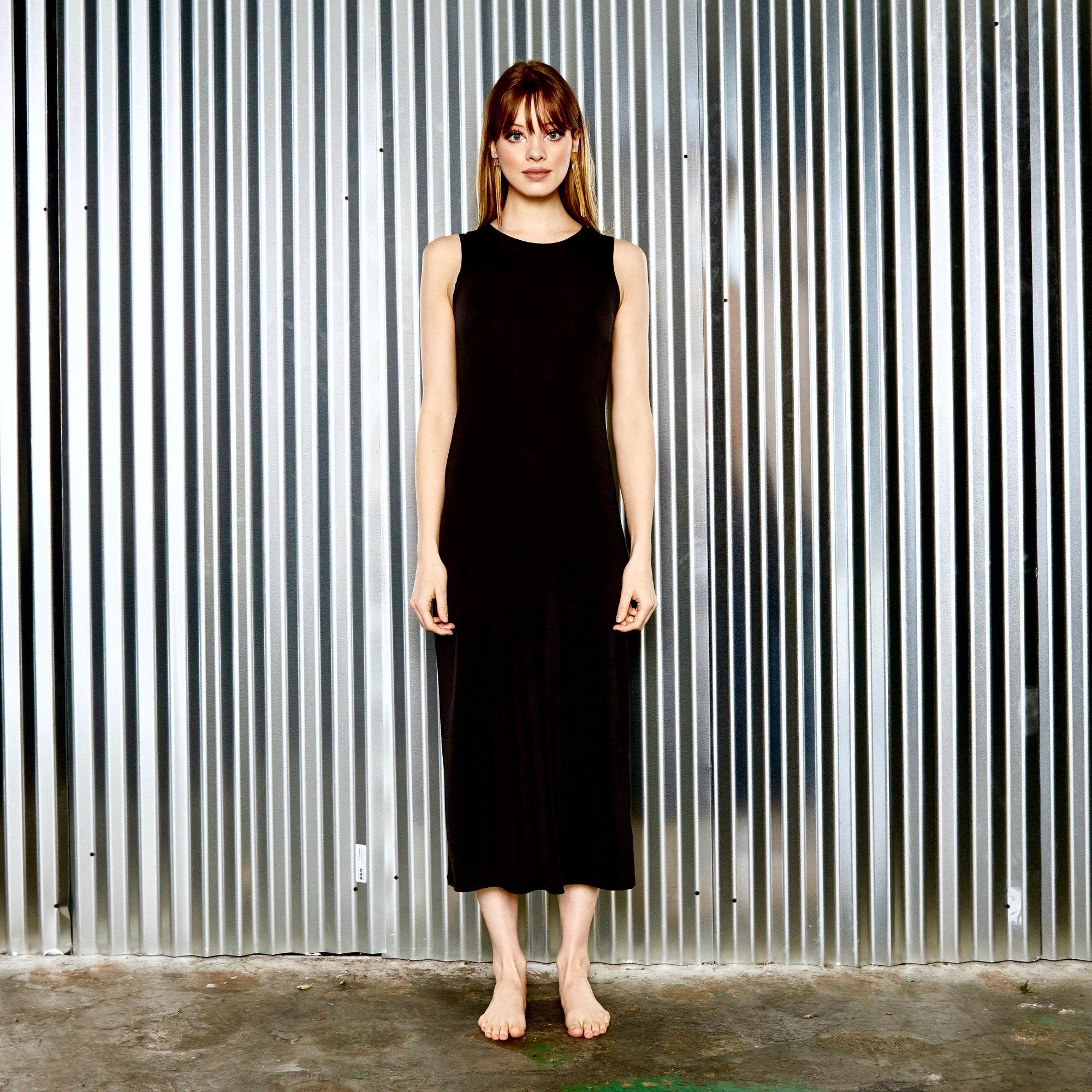 maxi slip without sleeves BLACK