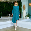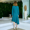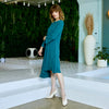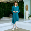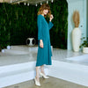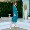 The popular rounded shape plays a prominent role in this style. See the Curve take Center stage at the middle (nay, slightly to the left) of this frock's frame. The Curved 'skirt' also mimics the shape du jour! It 'seam' we added a few geometric features to the sleeves as well. By pattern blocking the 'top' and 'bottom', the seams stand out on the SWIRL.Can you feel it?