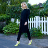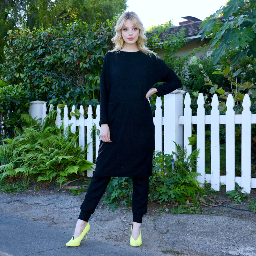 AdDRESSing THE ISSUE- Not in the mood to lounge around? Throw those loungers to the side and rezip the sides of the top part of the set.Voila; a frock meant for frolicking or whatever your version of fun is. You can also turn this dress into a top when you pair it with a pencil skirt or add a silky number below for a little more action & flow. The side slits will show a peek of what lies beneath. Go from play date to date night in a flash by zipping down the sides. Ditch the slippers/sneakers for stilettos and go for a sunset stroll.